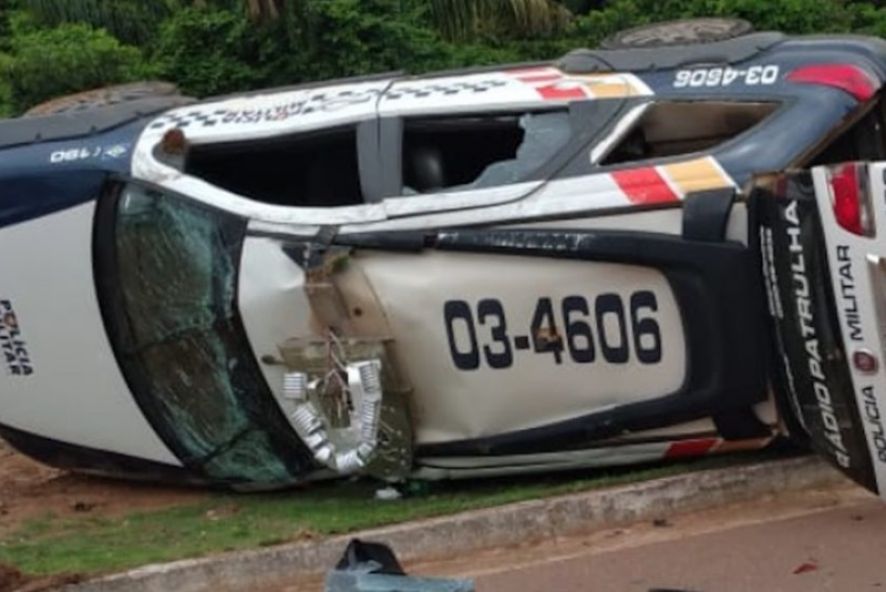 Viatura da PM capota após colisão e dois militares ficam feridos