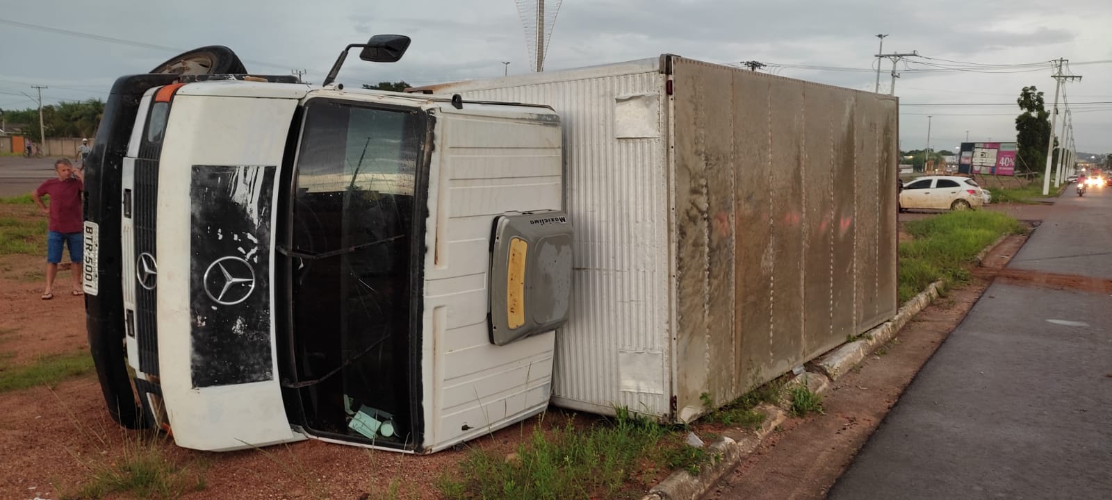 Um acidente no final da tarde desta quinta-feira (02) na Rua Rotary Internacional, via paralela à BR-163 em Peixoto de Azevedo (690 Km de Cuiabá) envolveu um caminhão baú 3/4, marca Mercedes Benz, e um Chevrolet Onix, cor branca. O fato ocorreu por volta das 17h.
