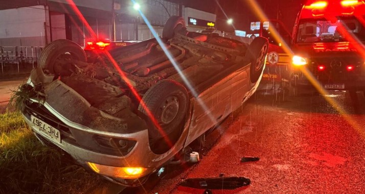 Veículo bate em meio-fio e capota na BR-163 em Sorriso